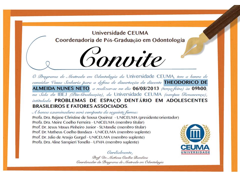 Convite para defesa de Dissertaçao de Mestrado do aluno THEODORICO DE ALMEIDA NUNES NETO